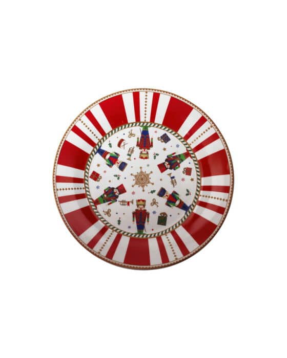 Balthazar tallerken har en bred dekorativ kant med rød-hvide striber og klassiske julemotiver som nøddeknækker, pakker og små ornamenter. Mønstret giver tallerkenen et tydeligt og karakterfuldt udtryk, der gør den velegnet til både hverdagens decembermiddage og julens mere festlige lejligheder.Tallerkenen kan bruges alene eller sammen med de øvrige dele i Balthazar-serien og bidrager til en ensartet og gennemtænkt juleborddækning. Serien skaber et klassisk udtryk, som holder år efter år.